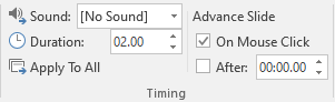 This is also fea- tures an ability to Play a sound and to control whether or not to change to the slide by “On Mouse Click”.