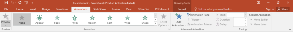 Adding Animations to Objects:- To add an Animation to an object, select the Animations tab. You are then given a variety of different options. “Blind”.